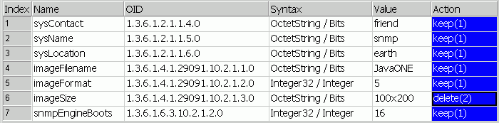 contains details of each modified from a MIB browser table.